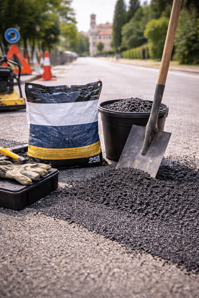 L’asfalto a freddo TALCOM è una soluzione pratica e immediata per interventi di manutenzione stradale e ripristino di superfici asfaltate.